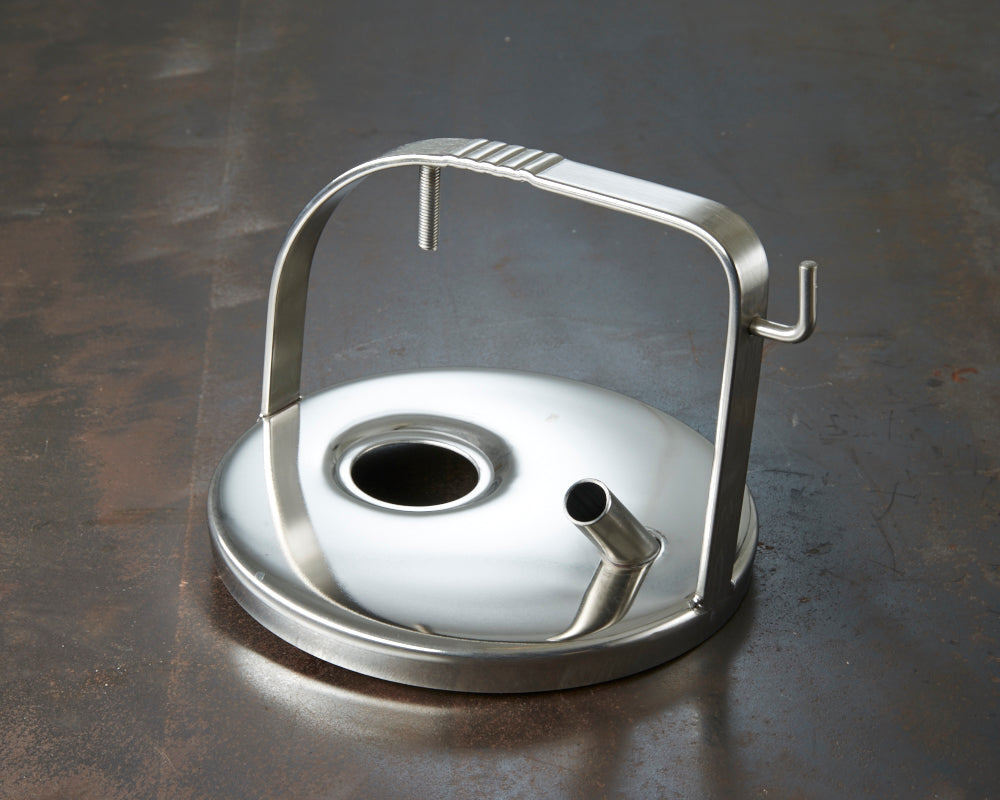 Edelstahl- Melkeimerdeckel, passend für DeLaval mit Stutzen ø 19 mm, Bügelhöhe 117 mm